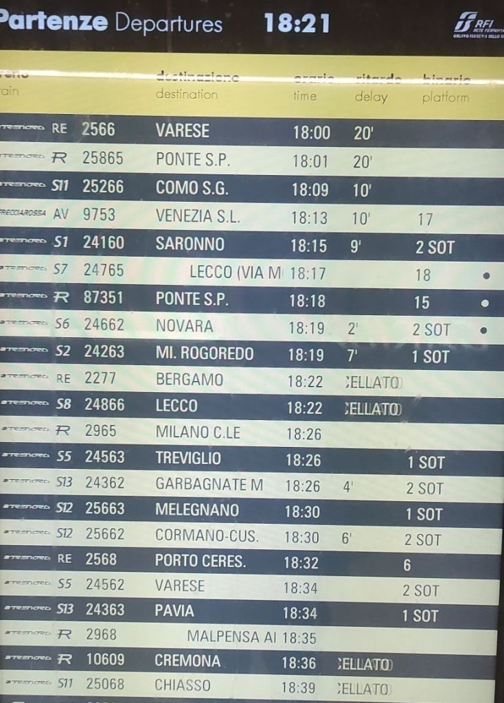 Si avvisano i gentili viaggiatori che trenord viaggia con trentadue minuti di ritardo. E domani, per i più fedeli, c’è pure sciopero.